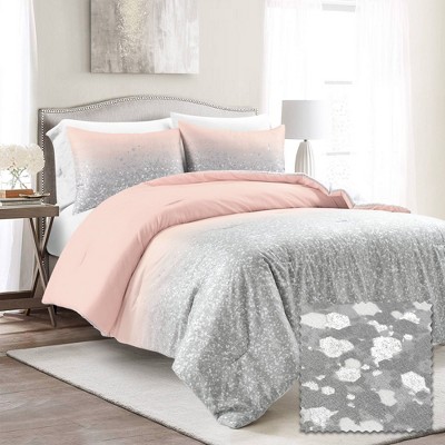 Pink and grey comforter set top