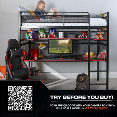 Loft bed with gaming desk underneath top