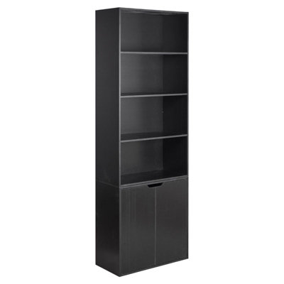 Black bookcase with storage top